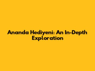 Ananda Hediyeni: An In-Depth Exploration