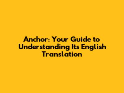 Anchor: Your Guide To Understanding Its English Translation