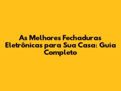 As Melhores Fechaduras Eletrônicas Para Sua Casa: Guia Completo