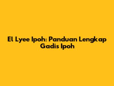 El Lyee Ipoh: Panduan Lengkap Gadis Ipoh