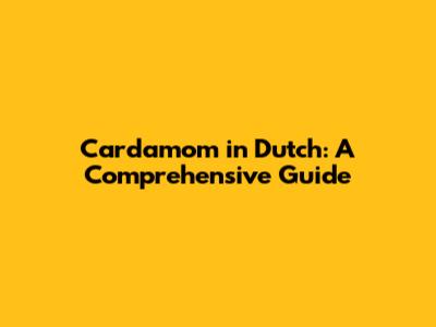 Cardamom In Dutch: A Comprehensive Guide