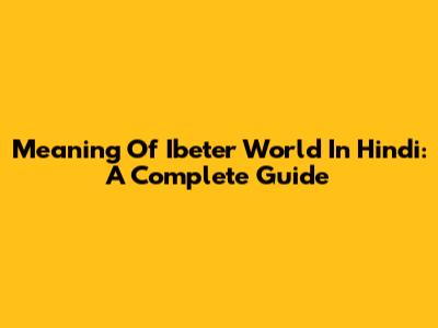 Meaning Of Ibeter World In Hindi: A Complete Guide
