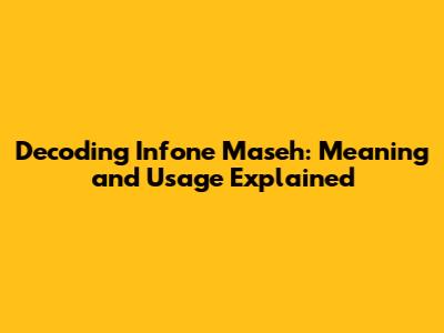 The Meaning of 'Infone Maseh' – The Breakdown