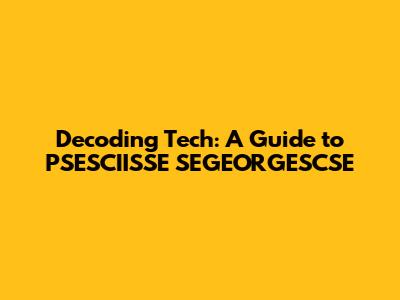 Decoding Tech: A Guide To PSESCIISSE SEGEORGESCSE