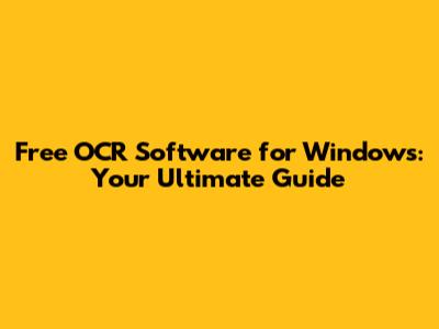 Top Free OCR Software Options for Windows