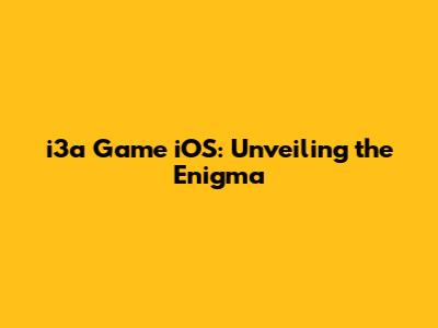 I3a Game IOS: Unveiling The Enigma