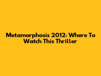 Metamorphosis 2012: Where To Watch This Thriller