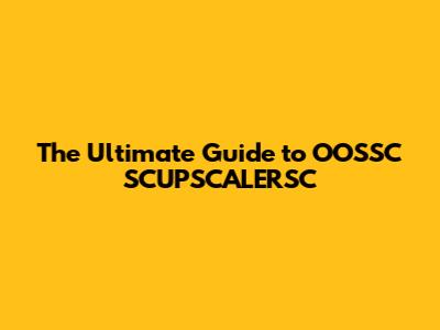 The Ultimate Guide to OOSSC SCUPSCALERSC