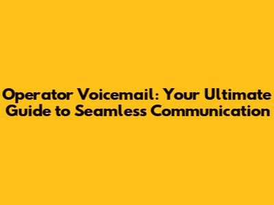 Operator Voicemail: Your Guide To Seamless Communication
