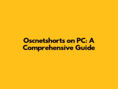Oscnetshorts On PC: A Comprehensive Guide