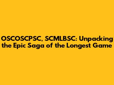 OSCOSCPSC, SCMLBSC: A Deep Dive Into The Longest Game
