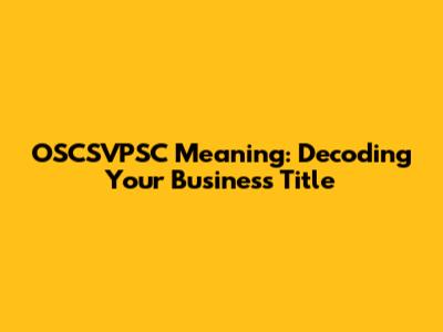 Hey guys, have you ever stumbled upon a business title that just seems like a jumble of letters? You're not alone! Today, we're diving deep into the world of acronyms and abbreviations to decipher one such title: OSCSVPSC. Understanding what this seemingly random collection of letters means can be super important, whether you're a potential client, a competitor, or just plain curious. So, buckle up, because we're about to explore the OSCSVPSC meaning and break down its significance in the business world. This article will thoroughly break down what OSCSVPSC stands for and its impact on a business.