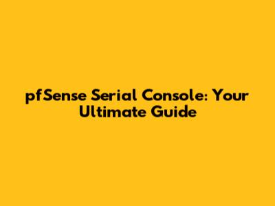 PfSense Serial Console: Your Ultimate Guide