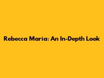 Hey guys! Today we're diving deep into the world of Rebecca Maria. You might have heard the name, but what's the real story? We're going to explore who she is, what she's known for, and why she's such an interesting figure. Stick around, because this is going to be a ride!