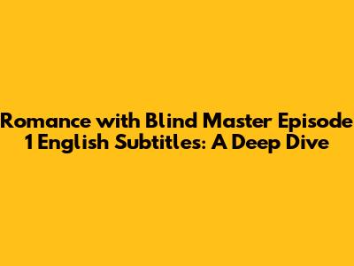 Hey guys! Are you looking for Romance with Blind Master Episode 1 with English subtitles? You're definitely not alone. This series has captured the hearts of many, and for good reason! The intriguing plot, compelling characters, and emotional depth make it a must-watch. In this article, we will discuss where you can watch Romance with Blind Master Episode 1 with English subtitles. You will learn why this episode is so captivating and what makes it stand out. So, grab your popcorn, and let's dive in!