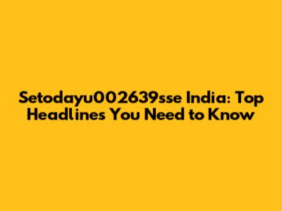 Setodayu002639sse India: Top Headlines You Need To Know