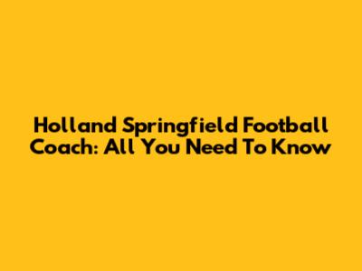 Holland Springfield Football Coach: All You Need To Know