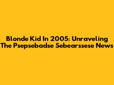 Blonde Kid In 2005: Unraveling The Psepsebadse Sebearssese News